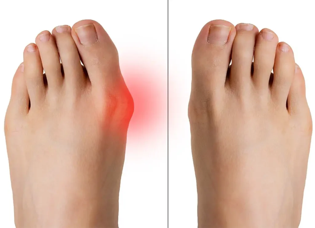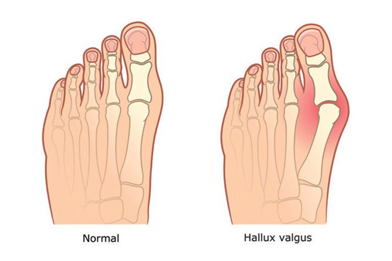 Cette déformation provoque un conflit entre la saillie osseuse du gros orteil et la chaussure, entraînant des douleurs. Dans certains cas, une inflammation ou une rougeur peut apparaître : il s’agit alors d’une bursite.